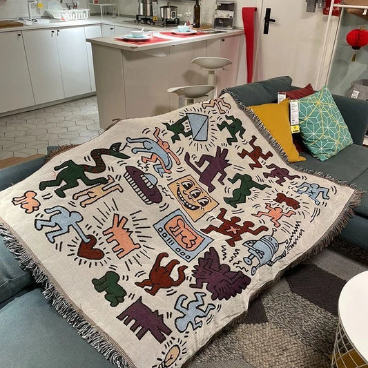 Versatile Outdoor Throw Blanket with Tassels: Perfect for Home and Adventures
